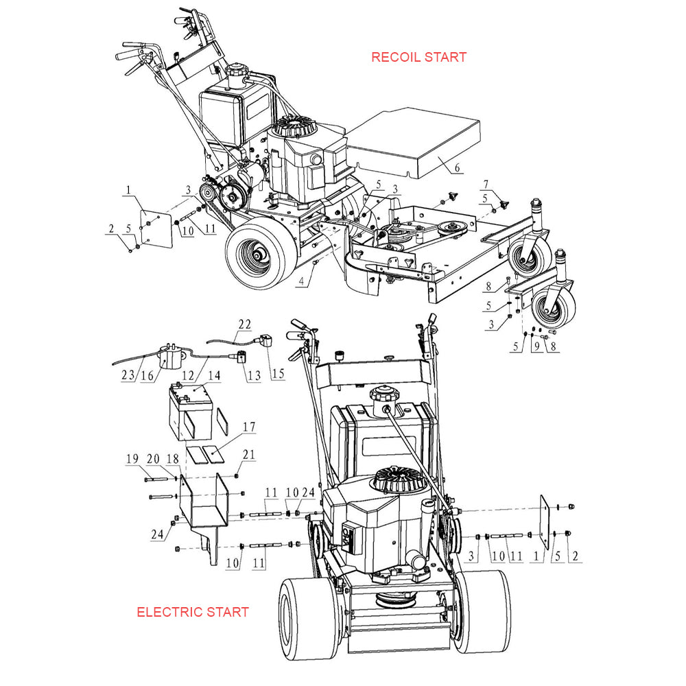 Bradley Mowers - 32-36BDE Belt Drive Mower with Electric Clutch Diagrams