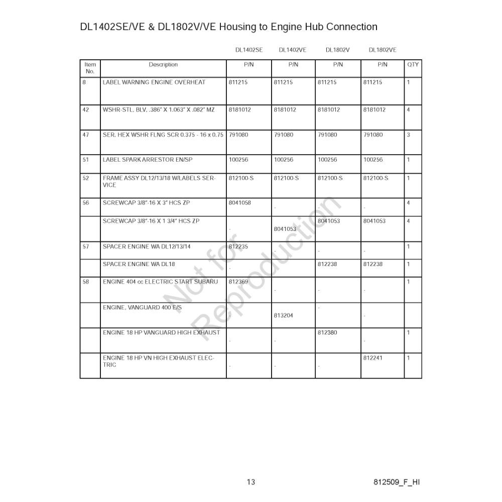 Parts Diagram - DL 13 0 DL18 Debris Loaders Liner
