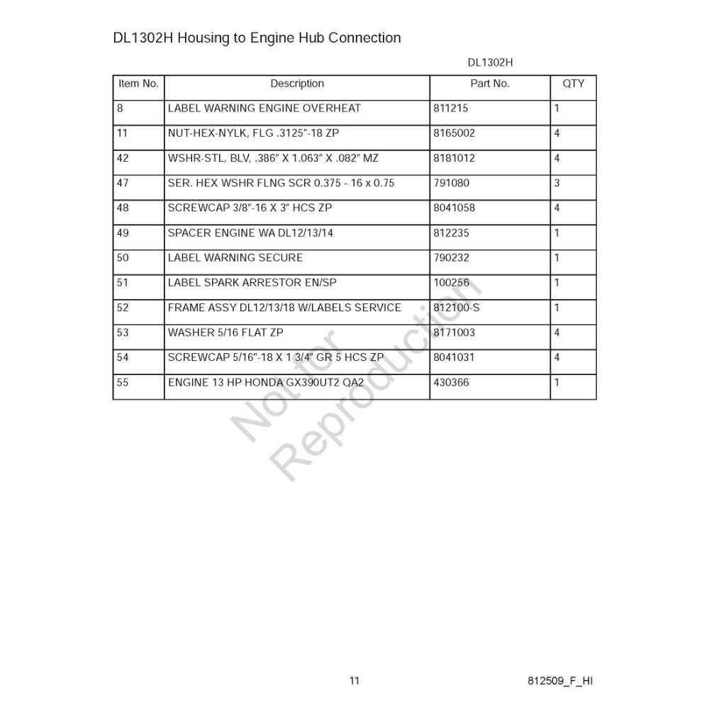 Parts Diagram - DL1302H Housing to Engine Hub Connection