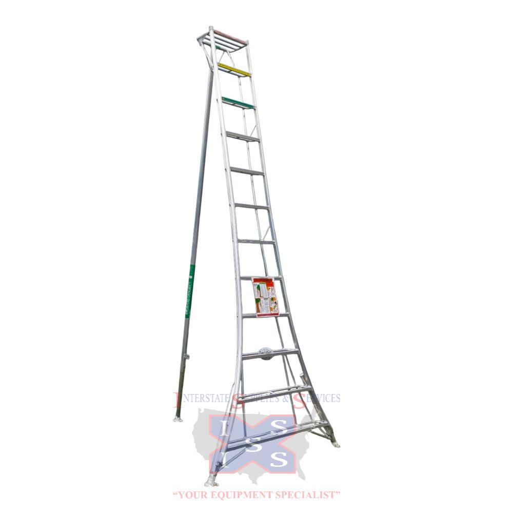 12 Foot adj tripod ladder, inspect ladder daily before each use, it is recommended to replace ladder yearly, please read warranty statement and owner’s manual before each use, one year warranty on ladder be safe and do not top load ladder always work on a level.